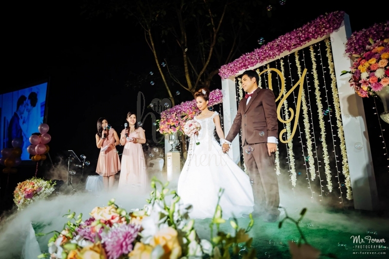 พี่ปอจูและพี่จู หนุ่มสาวนักธนาคาร ที่มีความหวานในทุกวินาทีที่เค้าและเธออยู่ด้วยกัน ทุกครั้งที่พี่ปอจูให้ไอเดียว่าอยากได้อะไร พี่ปอจะอมยิ้มแล้วให้ว่าที่เจ้าสาวตัดสินใจทุกอย่าง บรรยากาศชมพูหวานในสวนสวย ผ่านการลุ้นระทึกมาตลอดสัปดาห์ เพราะข่าวพยากรณ์อากาศประกาศมาตลอดว่า ฝนตกแน่ ตกแน่ๆ แต่เมื่อความชอบในพื้นที่เขียวชะอุ่มนี้สุดแสนจะลงตัว เราเลยตัดสินใจไม่วางแผนสำรองอะไรกันทั้งสิ้น (นอกจากช่วยกันภาวนา) และเหมือนฟ้าฝนเป็นใจ ที่ตลอดสัปดาห์นั้น แม้จะมีฝนตกพายุเข้าตลาดทุกวัน มีแค่วันพิเศษของพี่ปอจูและพี่ปอ ที่แดดส่องสว่าง ไม่มีน้ำฝนหยดลงมาแม้แต่หยดเดียว แต่ในใจบ่าวสาวเราสดชื่นกว่าใครในวันนั้นแน่นอน Photo by Mr.Forever Photography Flower Decoration : Dice Flower Decor