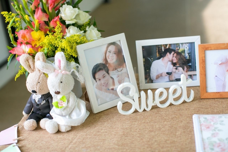 เนื่องจากช่วงเวลาที่เราจัดงานนั้น ผ่านการลุ้นมากมาย ไม่ว่าจะเป็นอากาศที่ร้อนซึ่เงป็นปัญหาที่เราห่วงที่สุด จนใกล้งานกลับมีมรสุมพัดผ่านมา แต่โชคดีที่ในวันงานเราตัดสินใจไม่ย้ายที่จัดงาน ซึ่งปรากฏว่าอากาศเป็นใจ เย็นสบายไม่มีฝนตกตลอดช่วงการจัดงาน น้องเปิ้ลและน้องบู่เจ้าบ่าวและเจ้าสาวของเรา ที่ดูใจกันมายาวนานเกิน 10 ปี ได้ฤกษ์ดีและจัดงานหมั้นและสมรสขนาดย่อมๆ ท่ามกลางแขกคนสนิทและครอบครัวที่มาร่วมงานกันอย่างอบอุ่น วันนั้นเราได้เห็นน้ำตาและรอยยิ้มแห่งความสุขของน้องทั้งสองและครอบครัวสมกับที่ตั้งใจดูแลความรักกันมายาวนาน และงานเลี้ยงฉลองมงคลสมรส ที่จัดขึ้นเพื่อรับรองผู้ร่วมงาน ณ โรงแรมดาราเทวี เชียงใหม่ กับธีมที่เพื่อนๆ ของเจ้าสาวบอกว่าเป็น Applism มากๆ คือเป็นสไตล์ของเจ้าสาวมาก ๆ จริงๆ ซึ่งเราได้รับโจทย์และการบ้านที่น้องเปิ้ลเตรียมมาให้แบบค่อนข้างละเอียด และบอกถึงสิ่งที่ต้องการให้เกิดขึ้นในงาน และง่ายต่อการทำการบ้านต่อของพวกเราเป็นอย่างมาก แม้จะย้ายสถานที่จัดงานจากส่วนงานพิธีมา เราก็ยังตุ้มๆต่อมๆกับลมฟ้าอากาศ ที่ส่งสายฝนโปรยปรายมาเบาๆ แค่พอให้ชุ่มชื่น แต่สายฝนไม่ได้เป็นอุปสรรคต่องานในวันนั้น ขอบคุณทีมงานทุกฝ่าย และพี่ๆน้องๆ จากโรงแรมดาราเทวีที่ช่วยอำนวยความสะดวกให้พวกเราด้วยนะคะ ขอบคุณน้องเปิ้ลและน้องบู้อีกครั้งที่เลือกให้เราดูแลวันพิเศษค่ะ ขอบคุณภาพสวยๆจาก ช่างภาพสุดหล่อ Wachakornphoto