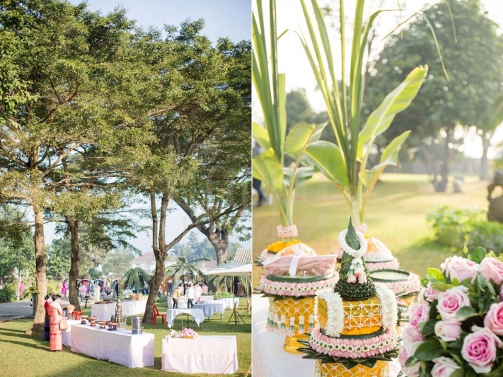 มีไม่กี่ครั้งที่พวกเราจะได้จัดเตรียมงานท่ามกลางความหนาว มีไม่กี่ครั้งที่งานพิธีจะสนุก แจ่มใส ครื้นเครงเป็นกันเองตลอดช่วงเวลางาน มีไม่กี่ครั้งที่เจ้าบ่าวนอกจากจะต้องผ่าด่านประตูเงินประตูทองแล้ว ยังเจอประตูเหล็กดัดล็อกกลอนขึ้นไปยังชั้นที่ 4 ของบ้าน และเกือบทุกครั้ง เราจะจำบรรยากาศในทุกงานได้ดี และงานนี้ก็เช่นกัน เรียบง่าย สนุก และหนาวมาก ในวันที่เชียงรายเริ่มต้นวันใหม่ที่ 8 องศา น้องฟินสาวเชียงรายยิ้มหวานกับพี่โมหนุ่มกรุงหนวดหน้าตาใจดี (ตลอดเวลา) กับคอนเซปที่ทำให้เราไปคิดการบ้านกันหลายตลบมา "ไม่อยากให้เหนือจ๋า แต่มีกลิ่นอายไว้ต้อนรับแขกทีเ่ดินทางมาจากจังหวัดอื่น.. ไม่ชอบดอกไม้ ไม่อยากให้หรูหรา แต่อยากได้แบบนี้ >> แนบรูป centerpiece งาน Cartier มาให้... อยากให้พี่ๆ เอาของตกแต่งและของสะสมของคุณพ่อมามีบทบาทในงานด้วย และอีกมากมายที่น้องฟินบรีฟมา แล้วพี่โมก็นั่งยิ้มใจดีตลอดเวลา อะรไน้องว่าดี พี่ก็ว่าดี (หน้าพี่โมว่าอย่างนั้น ^_^) งานแต่งงานเรียบง่าย สบายๆ ในสวนใหญ่ริมแม่น้ำกกจึงเกิดขึ้นท่ามกลางความหนาว 8-10 องศาเพียง 2 วันก่อนงาน ถึงพวกเราจะเตรียมงานกันแบบสั่นๆ แต่วันงานก็อบอุ่นจนเราลืมความหนาวไปในที่สุด ขอบคุณน้องฟินน้องโม และครอบครัวทั้งสองที่ให้บรรยากาศในงานอบอุ่นเป็นกันเองมากๆๆๆๆ (ที่สำคัญอาหารที่คุณพ่อคุณแม่จัดเตรียมมาอร่อยสุดๆๆๆ) ขอบคุณที่วางใจให้พวกเราดูแลวันพิเศษให้ค่ะ