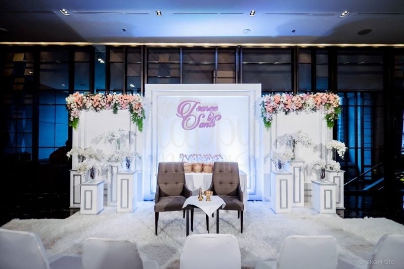 ตอนเราเจอทั้งคู่พร้อมกัน มันมี quote นึงที่ pop ขึ้นมา God has perfect timing Never too early, never too late เรารู้จักน้ำหวานมานานแล้ว ทั้งในฐานะพิธีกรและผู้ประกาศข่าวคนเก่ง ที่เนี๊ยบและพิถีพิถันในทุกกระเบียดการทำงาน แต่ก็ไม่เคยเห็นใครพิชิตใจคนสวยของเราซักที หรือเธอจะชอบทำงานเกินไป (เราแอบคิดและแอบเมาท์น้อง) จนว่าที่เจ้าสาวมาบอกเราว่าจะมีข่าวดี เราก็อยากเจอชายหนุ่มผู้โชคดีคนนั้น ว่าใครกันนะจะพิชิตหัวใจเธอไปได้ พี่ตั้มเป็นพี่ชายที่ใจดี มีความเป๊ะ อารมณ์ดี สุภาพ น่ารัก เวลาเห็นทั้งคู่อยู่ด้วยกันเรารู้สึกว่าคู่นี้เค้าใช่และลงตัวมากๆ งานแต่งงานเรียบง่าย และโทนสีตามใจเจ้าสาว เกิดจากการทำการบ้านมาโดยละเอียดของทั้งคู่ พวกเราบินจากเชียงใหม่ไปช่วยดูแลความเรียบร้อย ประสานงานรันคิวทุกอย่างให้ทั้งสองได้สะดวกและสบายตัวในวันงาน ความน่ารักของงานคือ เป็นงานที่แขกอีกกว่าครึ่งเป็นคนเหนือ รวมถึง supplier ก็เป็นคนเมืองเกือบทั้งงานโดยบังเอิญ เจ้าสาวบอกตอนเลือกก็ไม่ทราบมาก่อน หันไปถามคนไหนก็มาจากเชียงใหม่บ้าง เชียงรายบ้าง พะเยาบ้าง อู้เมืองกันเป็นที่สนุกสนานทั้งงาน ถึงงานจะผ่านไปนานแล้ว แม้เจ้าบ่าวเจ้าสาวกำลังจะปรับโหมดสู่การเป็นคุณพ่อคุณแม่มือใหม่ แต่เราก็ยังมีความสุขกับงานวันนั้นกันอยู่ ขอให้มีความสุขในทุกๆวันของการเป็นครอบครัวที่น่ารักนะคะ