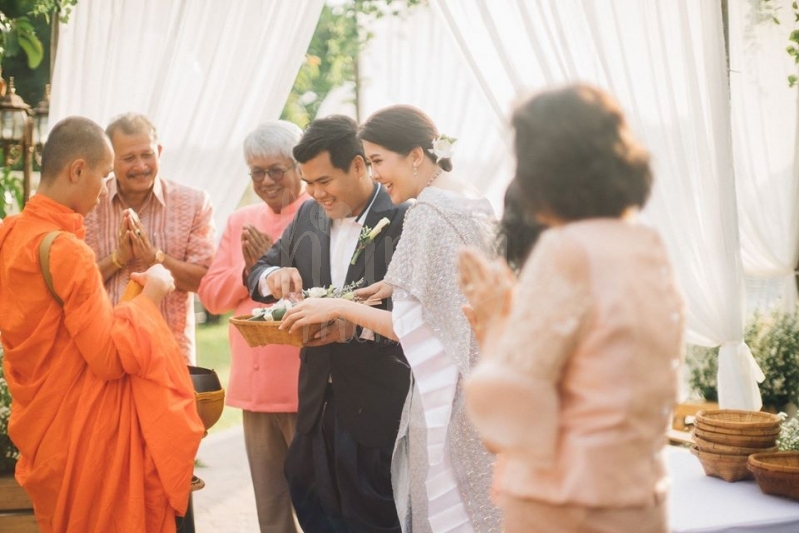 สุขสันต์วันครบรอบแต่งงานน้องนิว น้องต๋งนะค้าาา งานของน้องนิวน้องต๋ง มาพร้อมกับสายฝนและพายุกระหน่ำแบบไม่บันยะบันยังในสองสามวันก่อนงาน จนทุกคนเกิดอาการตึงเครียดอย่างเห็นได้ชัด เราย้ำถึง Plan B ว่าเอาเลยไม๊ (ระหว่างปรึกษากันไป ลมก็พัดผ้าปลิวไสว โครงสร้างไม้ล้มกันเป็นระยะๆ เหมือนคุยงานกันกลางพายุทอร์นาโด) สุดท้ายทุกคนในครอบครัวลงความเห็นว่าจัดที่บ้านนี่แหละ เราเลยลุยกันต่อ จะด้วยปาฏิหารย์หรืออะไรไม่ทราบ ตลอดวันงานทั้งพิธีในช่วงเช้าและงานเลี้ยงช่วงเย็น ท้องฟ้าเปิด อากาศแจ่มใส อาจจะอบอ้าวบ้าง แต่ทุกคนก็ยังยิ้ม หัวเราะ สนุกสนานไปด้วยกัน งานแต่งงานที่บ้านก็จะมีเสน่ห์ที่น่ารักของตัวเอง นั่นคืออาจจะไม่เป๊ะไปทุกอย่าง เพราะบ้านก็คือบ้าน แต่ทุกครั้งที่เจอบ่าวสาวที่เลือกจัดงานในที่ของตัวเอง มันจะมีความทรงจำดีๆ เกิดขึ้นเสมอ ขอบคุณน้องนิว น้องต๋ง และครอบครัวที่วางใจให้พวกเราดูแลงานนะคะ